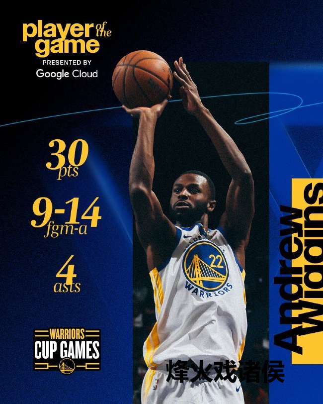 强者(12-3):维金斯30分3篮板4助攻、库里19分7篮板7助攻、希尔德12分6篮板、格林11分8篮板5助攻、波杰姆斯基11分5篮板3助攻、库明加7分4篮板